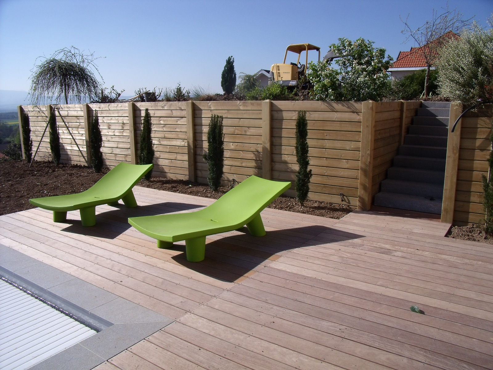 - Menuiseries paysagères : terrasse bois, plage de piscine...