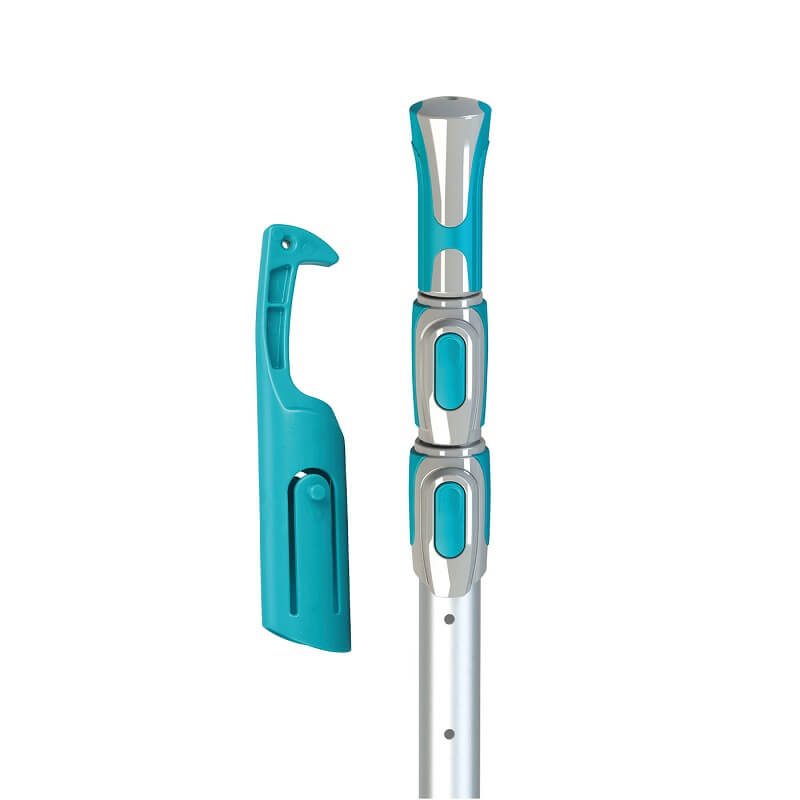 En aluminium robuste, ce manche télescopique est flexible et facilement maniable. Léger, sa manipulation est aisée et peut très facilement s’étendre de 1,5m à 4,5 m. Un système de verrouillage par clip tous les 15 cm permet d’ajuster facilement sa longueur aux dimensions voulues. Grâce à son crochet multi-usages, vous pouvez facilement récupérer un tuyau de piscine dans l’eau ou recueillir votre skimmer sans vous baisser. Son système d’accroche facile est idéal pour y ajouter votre tête de balai aspirateur de piscine, votre épuisette de surface ou épuisette de fond, vos brosses de parois, de coin, de fond…